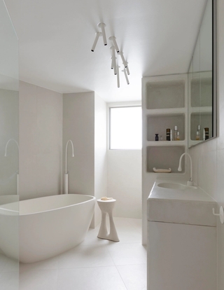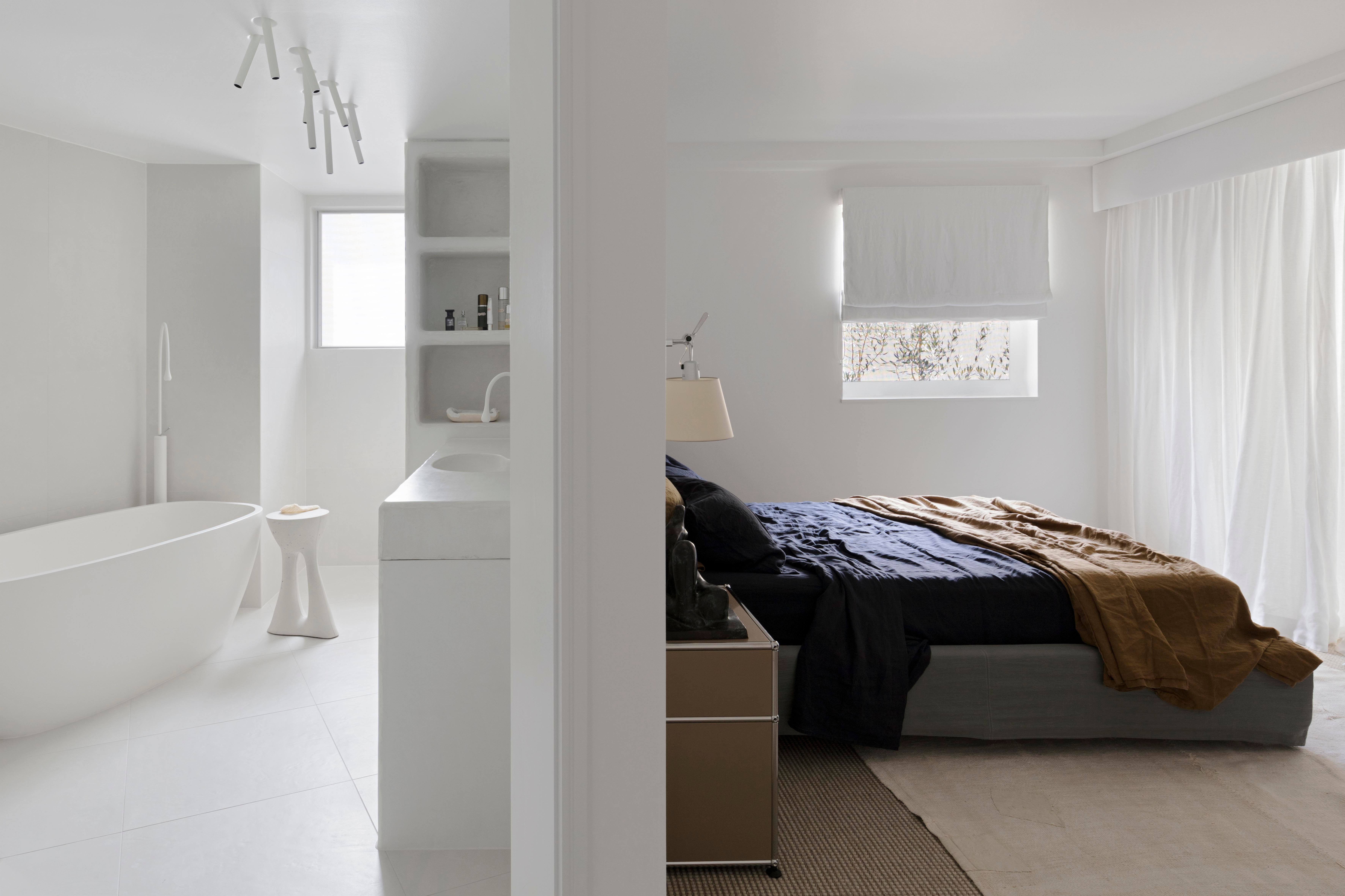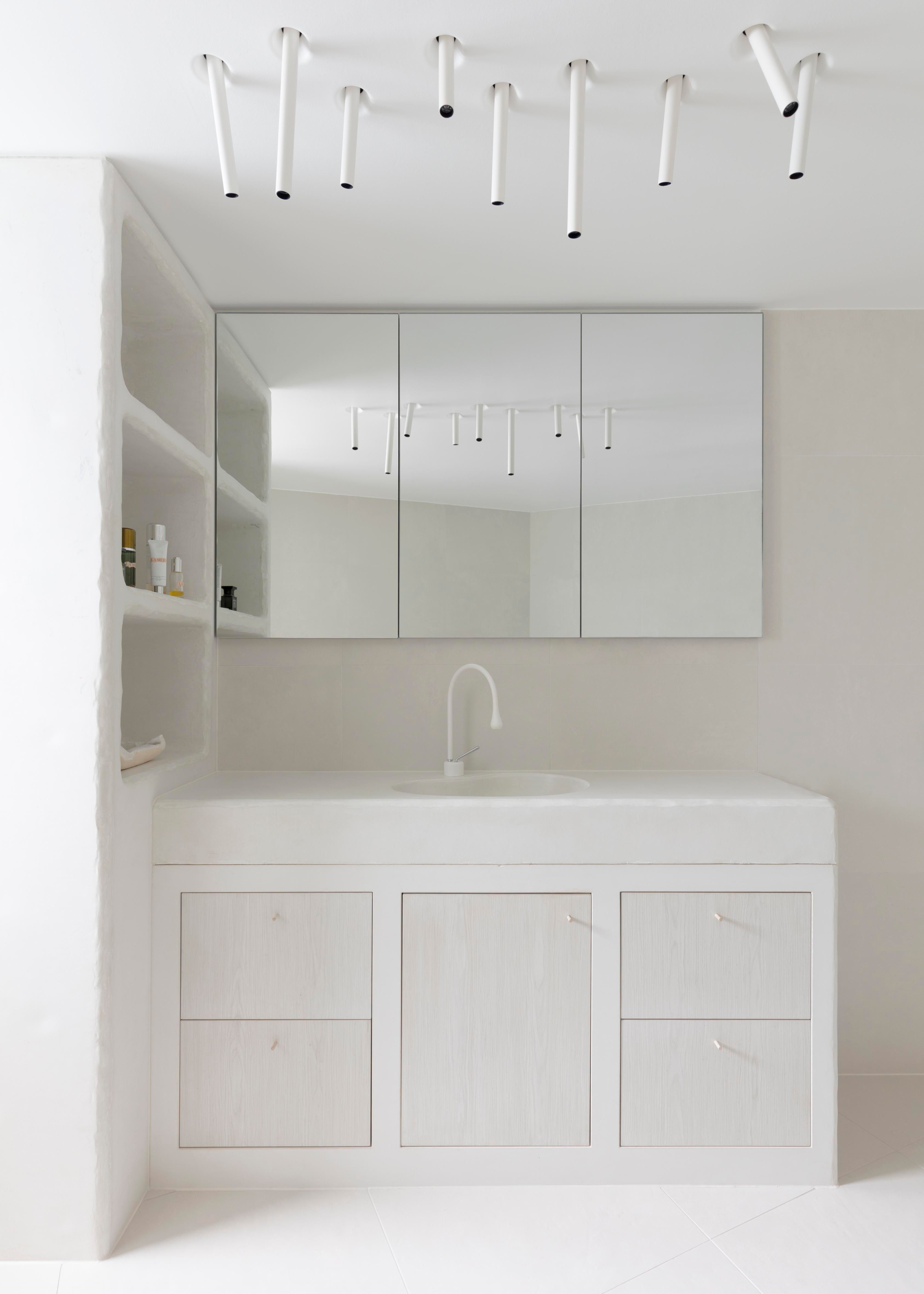 Interior architecture - AP Design House / Build - JCM Builders / Photography - Felix Forest. A seamless blend of concrete and porcelain, the design focuses on simplicity and tactility, where form and function effortlessly coexist.